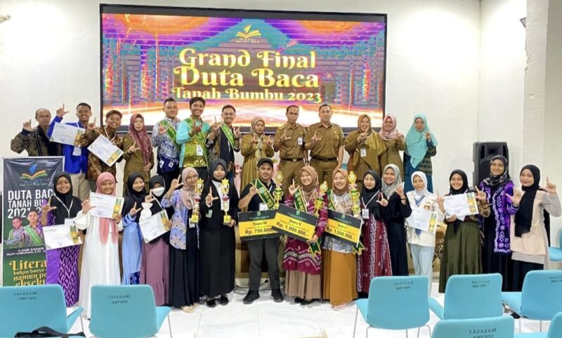 Dalam ajang pemilihan Duta Baca Kabupaten Tanah Bumbu tersebut keluar sebagai juara III Taufik Hidayat juara II Nur Hidayat Rahmah dan juara I yang sekaligus menjadi Duta Baca Kabupaten Tanah Bumbu tahun 2023, Irma Ningsih, S.Pd.