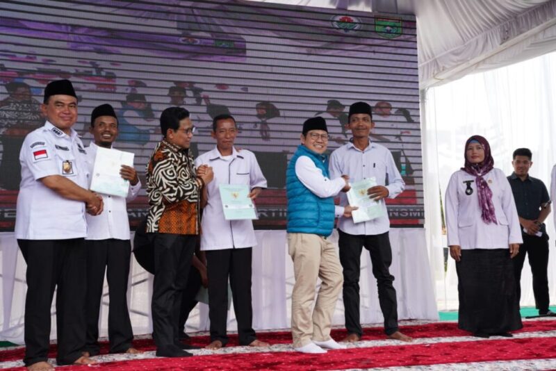 Dalam sambutannya, Cak Imin mengucapkan terimakasih kepada seluruh pihak yang sudah mensukseskan sertifikasi tanah kepada transmigran.