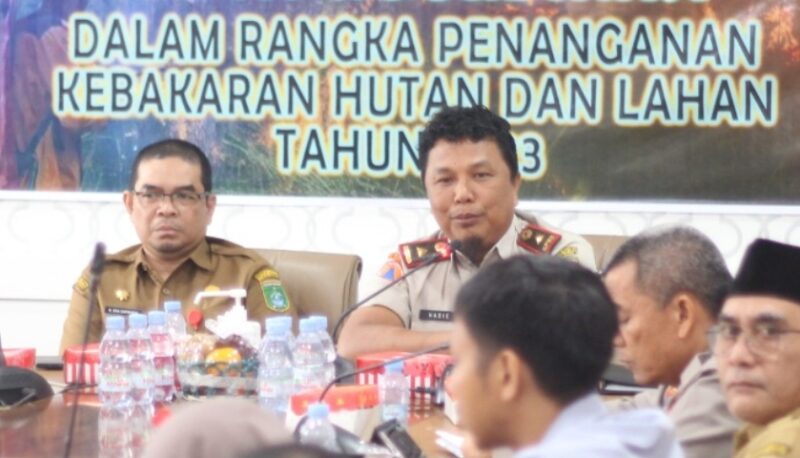 “Melalui Rakor ini kami mengharapkan harus ada kesiapan dari BPBD, TNI/Polri, Unsur Pentahelix, Perusahaan, Kecamatan hingga Desa untuk menyiapkan satgas-satgas penanggulangan bencana, khususnya karhutla. Kemudian apabila terjadi bencana karhutla di desa agar langsung kordinasi ke kecamatan untuk di konfirmasi ke kabupaten”, ucapnya.