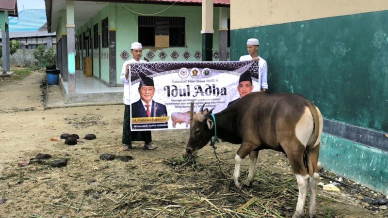 “Saya juga menyalurkan sumbangan sapi istimewa dari Ketua Umum Partai Gerindra Bapak Prabowo Subianto,” ujar SBR saat memantau pemotongan sapi kurban di Kabupaten Tanah Bumbu pasca Salat Idul Adha, Senin (17/6/24).