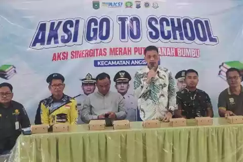 TANAHBUMBU, RadarBanua – Pemerintah Kabupaten Tanah Bumbu bekerja sama dengan Kodim 1022/Tnb, Polres Tanah Bumbu, dan KPU Tanah Bumbu menggelar Aksi Go To School sebagai bagian dari rangkaian Aksi Sinergitas Merah Putih. Kegiatan ini dipusatkan di SMAN 1 Angsana, Kecamatan Angsana, Jumat (14/11/2025).