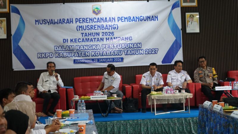 KOTABARU, RADARBANUA – Kecamatan Hampang menggelar Musrenbang (Musyawarah Perencanaan Pembangunan) untuk membahas dan menyepakati prioritas pembangunan di tingkat kecamatan. Selasa 28 Januari 2026 yang berlangsung di aula Kecamatan Hampang Kabupaten Kotabaru