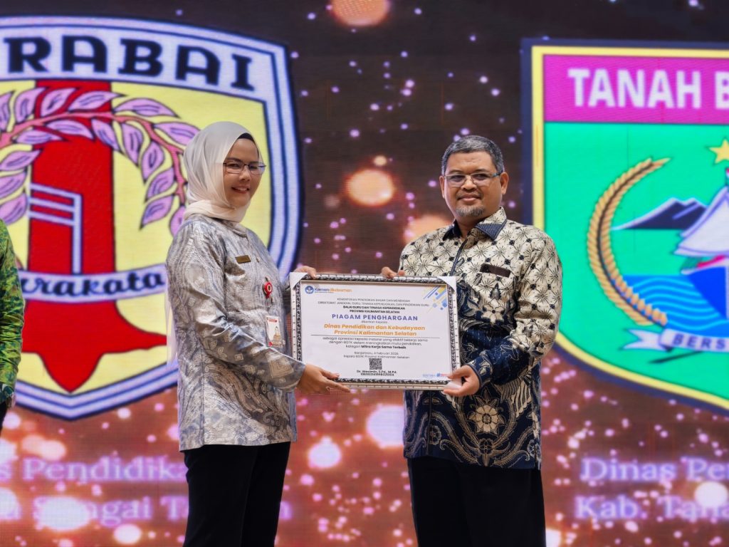 Penghargaan tersebut diberikan kepada Pemerintah Provinsi Kalsel melalui Kepala Disdikbud Kalsel, Galuh Tantri Narindra pada Rapat Koordinasi Program Kerja BGTK Kalimantan Selatan tahun 2026 di salah satu hotel di Banjarbaru, Rabu (4/2/2025) malam.
