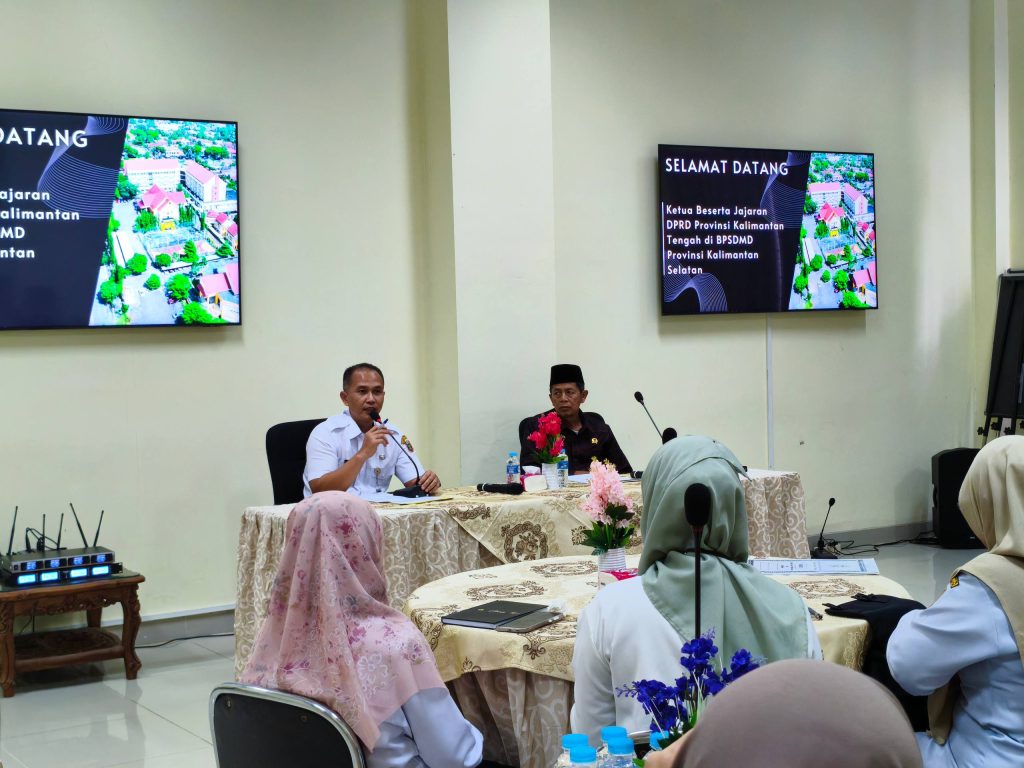 Rombongan DPRD Provinsi Kalimantan Tengah dipimpin Ketua Komisi I DPRD Provinsi Kalimantan Tengah, Muhajirin beserta jajaran anggota. Kedatangan rombongan disambut oleh Kepala BPSDMD Provinsi Kalimantan Selatan, Faried Fakhmansyah yang diwakili Kepala Bidang Pengelolaan Kelembagaan dan Evaluasi, Khalid Rijaluddin.