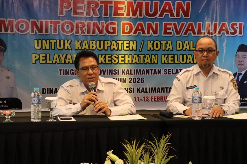 Dinas Kesehatan Provinsi Kalimantan Selatan (Kalsel) menggelar Pertemuan Monitoring dan Evaluasi (Monev) Pelayanan Kesehatan Keluarga bagi Kabupaten/Kota se-Kalsel di Banjarmasin, Rabu (11/2/2026).