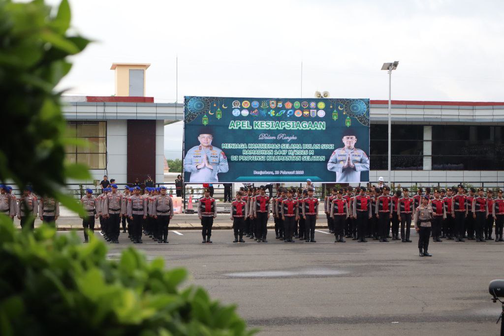 Apel kesiapan ini menjadi komitmen bersama Polda Kalimantan Selatan dan seluruh pemangku kepentingan untuk memastikan situasi keamanan tetap terjaga selama bulan suci Ramadan 1447 Hijriah. MC Kalsel/Fuz