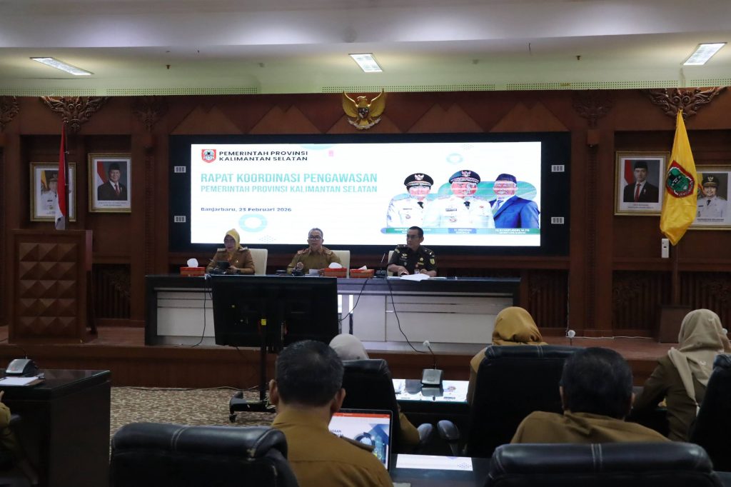 Pemerintah Provinsi Kalimantan Selatan (Kalsel) menggelar Rapat Koordinasi Pengawasan Pemerintahan Provinsi Kalimantan Selatan di Ruang Rapat Aberani Sulaiman, Kantor Gubernur Kalsel, Banjarbaru, Senin (23/2/2026).