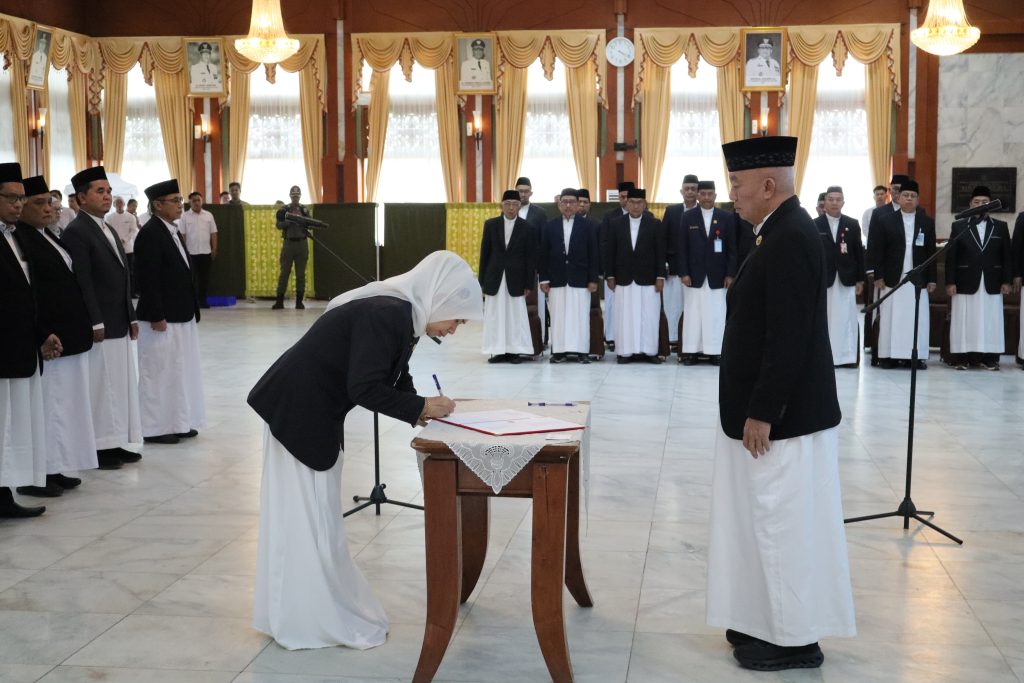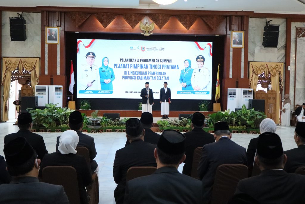Pelantikan tersebut mencakup promosi jabatan dari Eselon IIB ke Eselon IIA serta pergeseran posisi antarpejabat Eselon IIA sebagai bagian dari upaya mengoptimalkan kinerja birokrasi di lingkup Pemprov Kalsel.