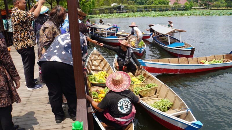 KOTABARU, RADARBANUA – Untuk melestarikan budaya dan mempromosikan wisata daerah, Pemerintah Provinsi Kalimantan Selatan membuat Replika Pasar Terapung Tradisional di Danau Air Tawar Taman Mini Indonesia Indah (TMII) Jakarta seperti halnya yang asa di Lok Baintan Kalsel. Yang mana menampilkan aktivitas jual-beli di atas jukung (perahu kecil) khas Banjar, kuliner, dan kerajinan.