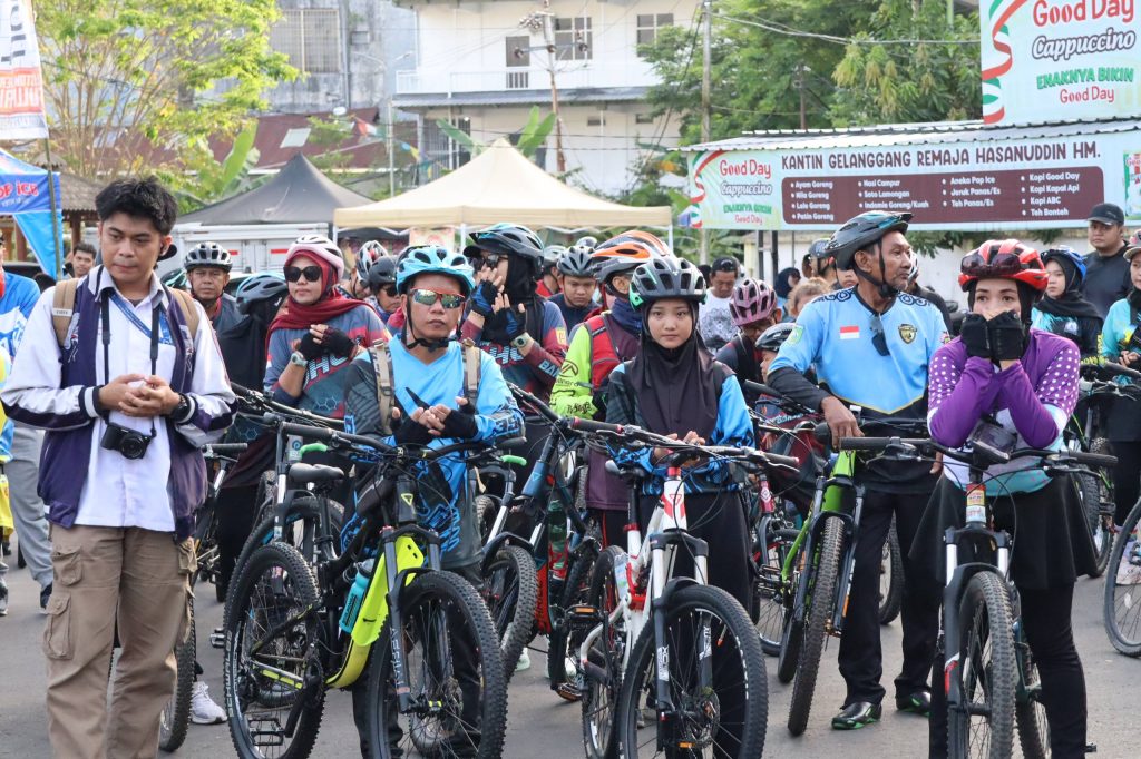 Sebanyak 1.500 goweser dari berbagai komunitas memadati kawasan GOR Hasanuddin HM, Banjarmasin, dalam kegiatan Gowes Starling yang digelar Dinas Kepemudaan dan Olahraga (Dispora) Provinsi Kalimantan Selatan, Minggu (19/4/2026).