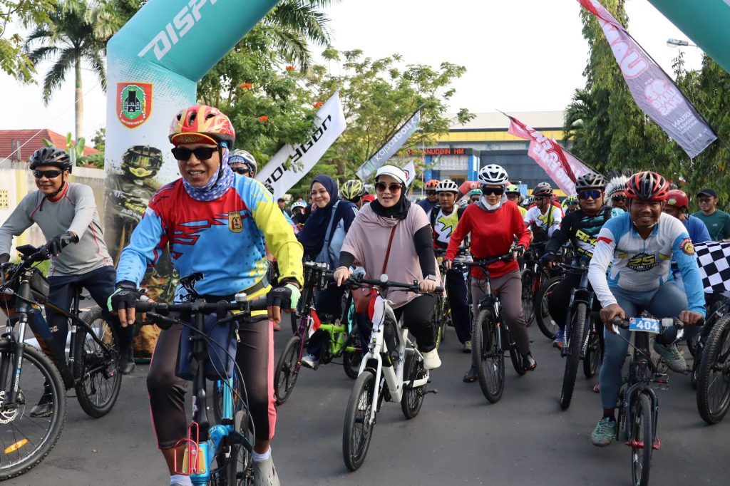 Kegiatan Gowes Starling juga turut dihadiri istri Wali Kota Banjarmasin yang ikut berbaur bersama masyarakat. Kehadiran beliau semakin menambah semarak kegiatan.