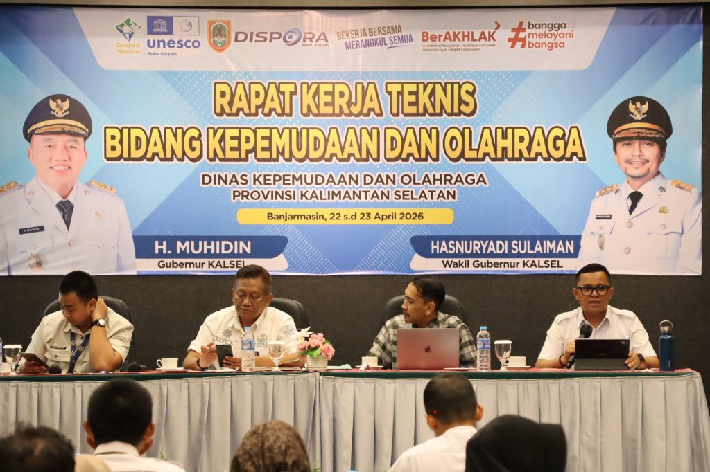 Dinas Kepemudaan dan Olahraga (Dispora) Provinsi Kalimantan Selatan menggelar Rapat Kerja Teknis (Rakernis) Bidang Kepemudaan dan Olahraga di Banjarmasin, Rabu (22/4/2026).