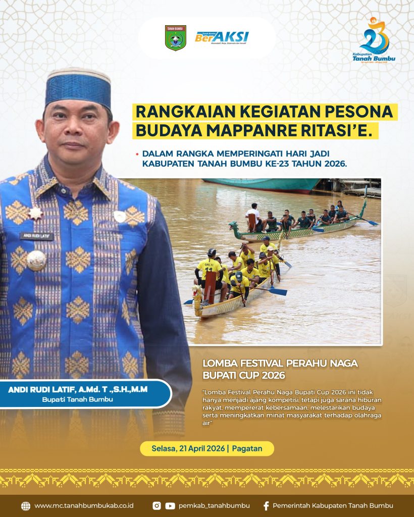 Bupati Tanah Bumbu, Andi Rudi Latif, menegaskan bahwa penyelenggaraan Festival Perahu Naga Bupati Cup 2026 diharapkan mampu meningkatkan minat masyarakat terhadap olahraga air sekaligus melestarikan budaya lokal yang telah menjadi identitas daerah.