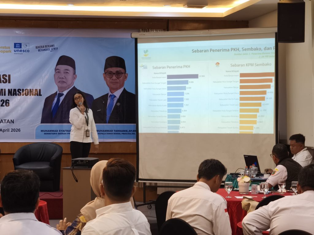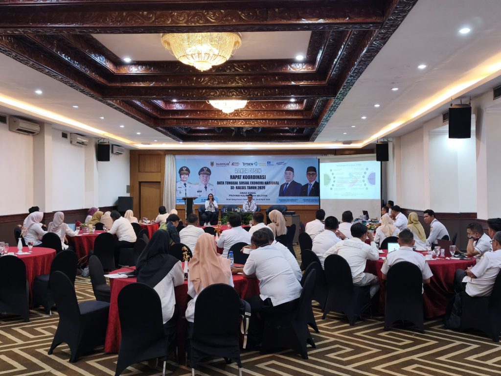Langkah tersebut mengemuka dalam kegiatan sosialisasi dan Rapat Koordinasi (Rakor) DTSEN yang diselenggarakan Dinas Sosial Provinsi Kalimantan Selatan, melibatkan perangkat daerah terkait, Dinas Sosial kabupaten/kota, serta Dinas Kependudukan dan Pencatatan Sipil (Dukcapil) di salah satu hotel di Banjarmasin, Rabu (29/4/2026).