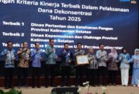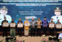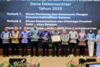 Gubernur Kalimantan Selatan, H. Muhidin, menyerahkan langsung penghargaan kepada perangkat daerah dan pemerintah kabupaten/kota atas capaian kinerja terbaik dalam pengelolaan serta penyaluran dana APBN,…